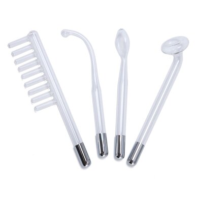 Į Darsonvalio aparato komplektą įeina 4 stikliniai elektrodai: šukų formos (plaukų augimo skatinimui), grybo formos (didesniems odos plotams), šaukšto forma (vidutinio dydžio plotams, pvz., nosies) ir mažas elektrodas (mažiems ploteliams ir pažeistoms vietoms).