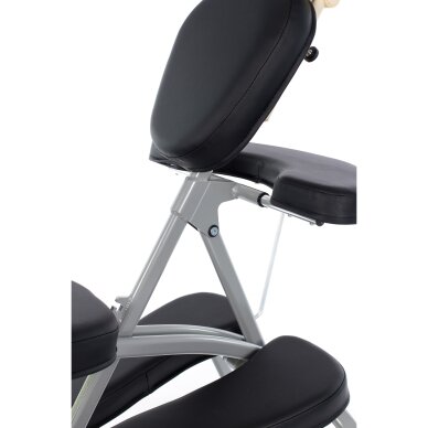 Dieser professionelle tragbare Stuhl ist langlebig, ergonomisch und kompakt. Speziell für Profis entwickelt. Alle weichen Oberflächen des Stuhls sind mit Small Cell ™-Schaumstoff überzogen, der aus hochwertigen, langlebigen Materialien besteht und ein angenehmes Gefühl auch bei längeren Eingriffen garantiert. Für den Komfort sowohl des Meisters als auch des Kunden ist der Stuhl mit einer Kopfstütze und einer Armlehne ausgestattet.