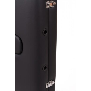 Dieses Modell hebt sich von anderen durch sein ästhetisches und attraktives Erscheinungsbild ab. Durch die Höhenverstellung der Beine kann der Tisch an die Körpergröße jedes Masseurs angepasst werden, wodurch optimale Ergebnisse während der Massagesitzung erzielt werden können. Für noch mehr Komfort ist der Tisch mit einer je nach Höhe und Neigungswinkel verstellbaren Kopfstütze (Aluminiumfuß) sowie Stellen zum Abstützen der Hände – sowohl am Kopfteil als auch an den Seiten – ausgestattet. Die abgerundeten Ecken des Tisches sind zusätzlich mit einem Vinyl-Schutzüberzug versehen.