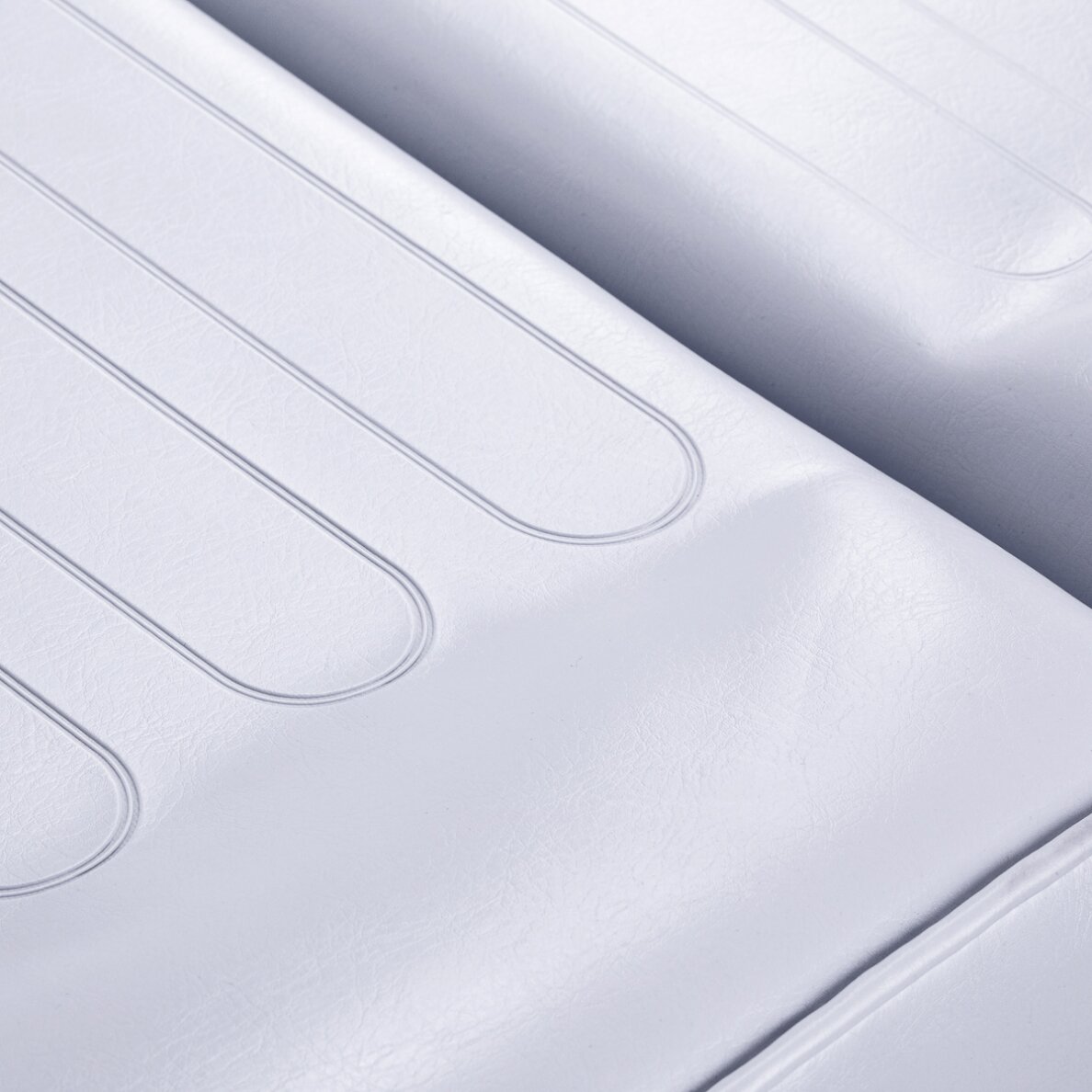 Der Stuhl ist mit Schaumstoff geeigneter Härte gefüllt und mit halbmattem weißem Kunstleder bezogen. Dieses Material ist angenehm zu tragen, feuchtigkeitsbeständig und leicht zu reinigen . Sorgfältig geformte Nähte verleihen dem Sitz eine ergonomische Form . Die solide Konstruktion garantiert Langlebigkeit und Stabilität . Das schlichte Design und die klassischen Farben lassen ihn nahtlos in jedes Interieur passen.