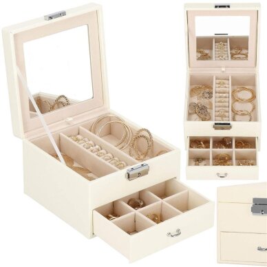 - viršutiniame lygyje yra 3 skyriai, įskaitant vieną žiedams.