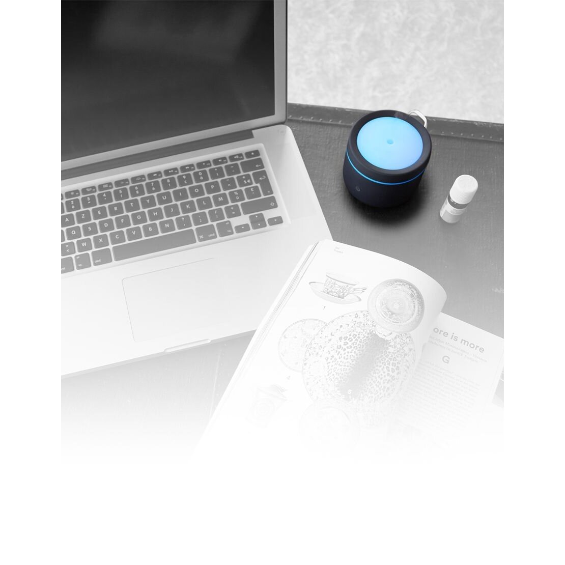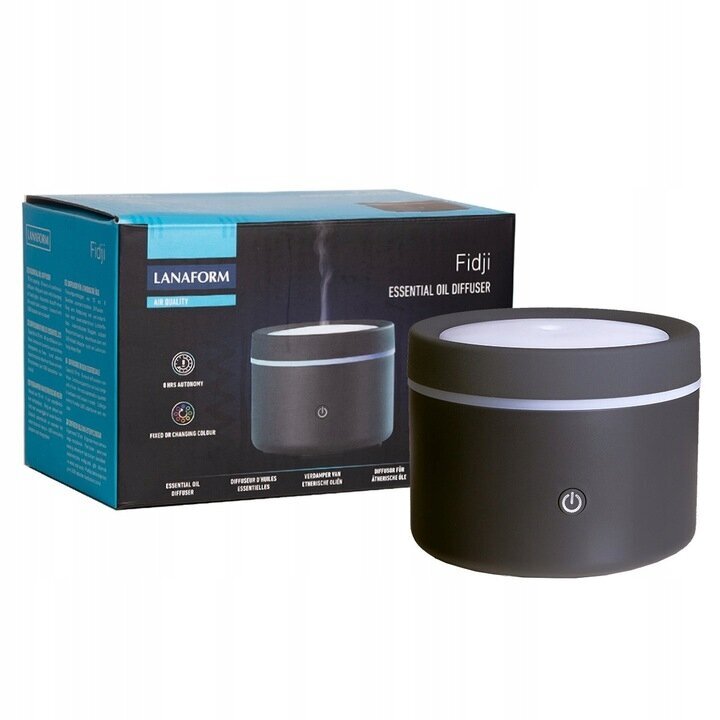Eeterlike õlide difuusor - õhu aroomiandur Lanaform Fidji Grey on väga kompaktne, nii et see leiab kergesti koha nii teie söögi- või töölaual kui ka magamistoas öökapil. See on vaikne, nii et saate hõlpsasti lõõgastuda eeterlike õlide aroomiga. See on USB-ühendusega, nii et saate selle igale poole kaasa võtta ja ühendada oma sülearvutiga.