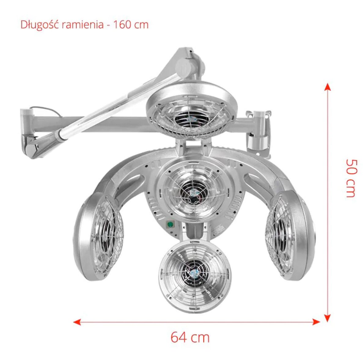 Professionaalne ripp-infrapunatsoon Gabbiano GD-505W on seade, mis on vajalik kõrget temperatuuri nõudvate teenuste jaoks, nagu värvimine, valgustus, hooldusprotseduurid või kuivatamine, aga ka püsistiil. Seade lühendab oluliselt iluprotseduuride kestust , võimaldab vastu võtta suuremat hulka kliente, säilitades samas salongis pakutavate teenuste kõrge kvaliteedi .
