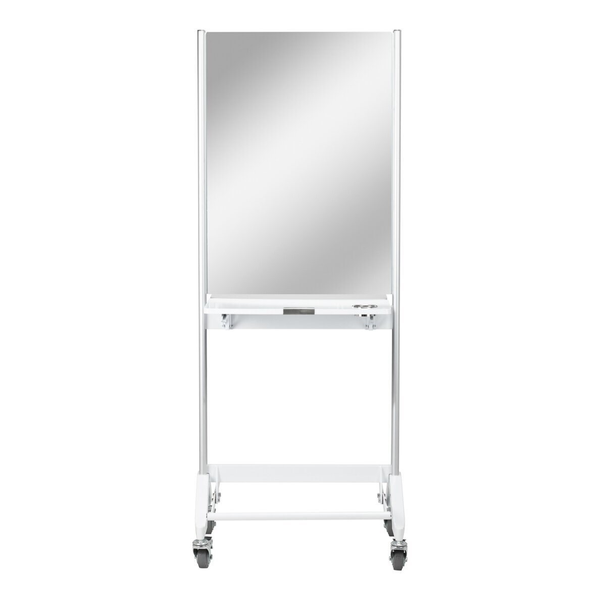 Praktiline kahepoolne ratastel juuksuripeegel. Sellel on kokkupandavad riiulid, nii et see säästab ruumi ideaalselt. Liikuvuse tagavad rattad, millel on lukud. Riiulitel on augud fööni jaoks.