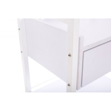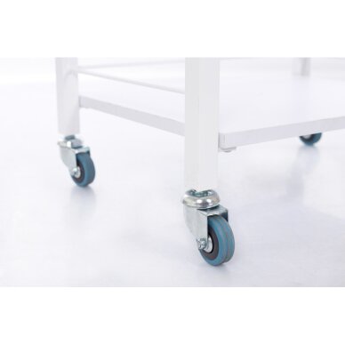 See kosmeetikakäru võimaldab teil mugavalt hoida enamikku oma tööks vajalikke tarvikuid - sellel on üks sahtli ja kaks riiulit. Ja kuna käru on ratastega, saate seda hõlpsasti õigesse kohta liigutada.