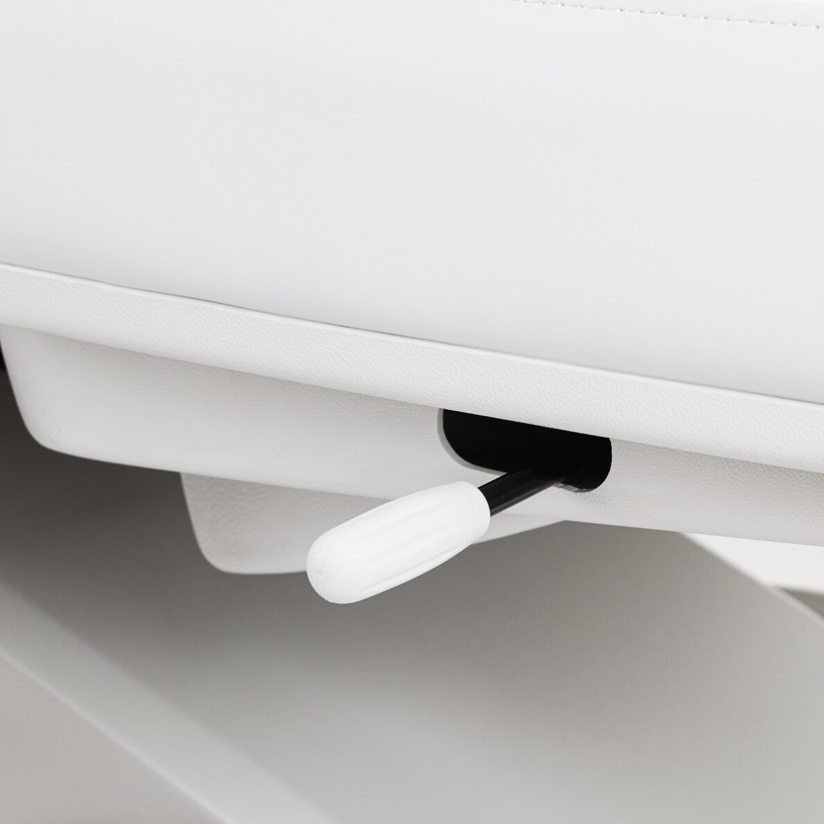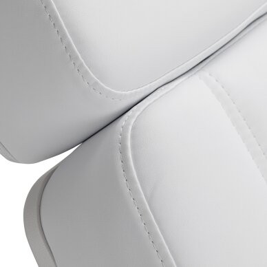 Ilutooli vastupidav konstruktsioon tagab stabiilsuse ja vastupidavuse igapäevasel kasutamisel. Sobiva kõvadusega vahuga täidetud iste tagab mugavuse isegi pikaajaliste protseduuride ajal. Kvaliteetsest ja meeldiva puudutusega valgest kunstnahast polster annab kogu mööbliesemele professionaalse ilme, olles samal ajal niiskuskindel ja kergesti puhastatav . Vastupidav alus tagab stabiilsuse, samas kui täpne viimistlus rõhutab ilusalongi tooli modernset iseloomu ja parandab istme ergonoomikat.