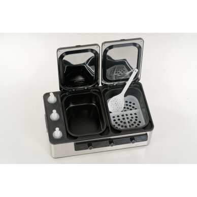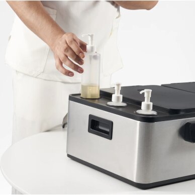 Massaažiõli soojendustsoonis on kolm 50 W soojendustoru ja massaažikivide soojendustsoonis kaks 500 W soojendusplaati, nii et saate iseseisvalt juhtida ja reguleerida massaažiõli/kreemi/losjooni ja kuumade kivide kuumenemist. See massaažiõli ja kuumakivisoojendi uuenduslik disain ei võimalda mitte ainult tõhusat tsoonide juhtimist, vaid aitab ka energiat säästa.