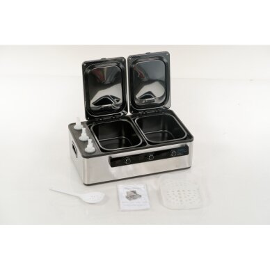Professionaalne massaažiõli ja massaažikivisoojendus, mis kasutab täiustatud põhja- ja tsoonisoojendustehnoloogiat kiirete ja tõhusate tulemuste saavutamiseks. Juhtpaneelil on digitaalne temperatuurinäidik, mis näitab nii seatud kui ka hetketemperatuure, nii et saate õlipudeleid ja kiviküttekausse hõlpsalt eraldi jälgida.