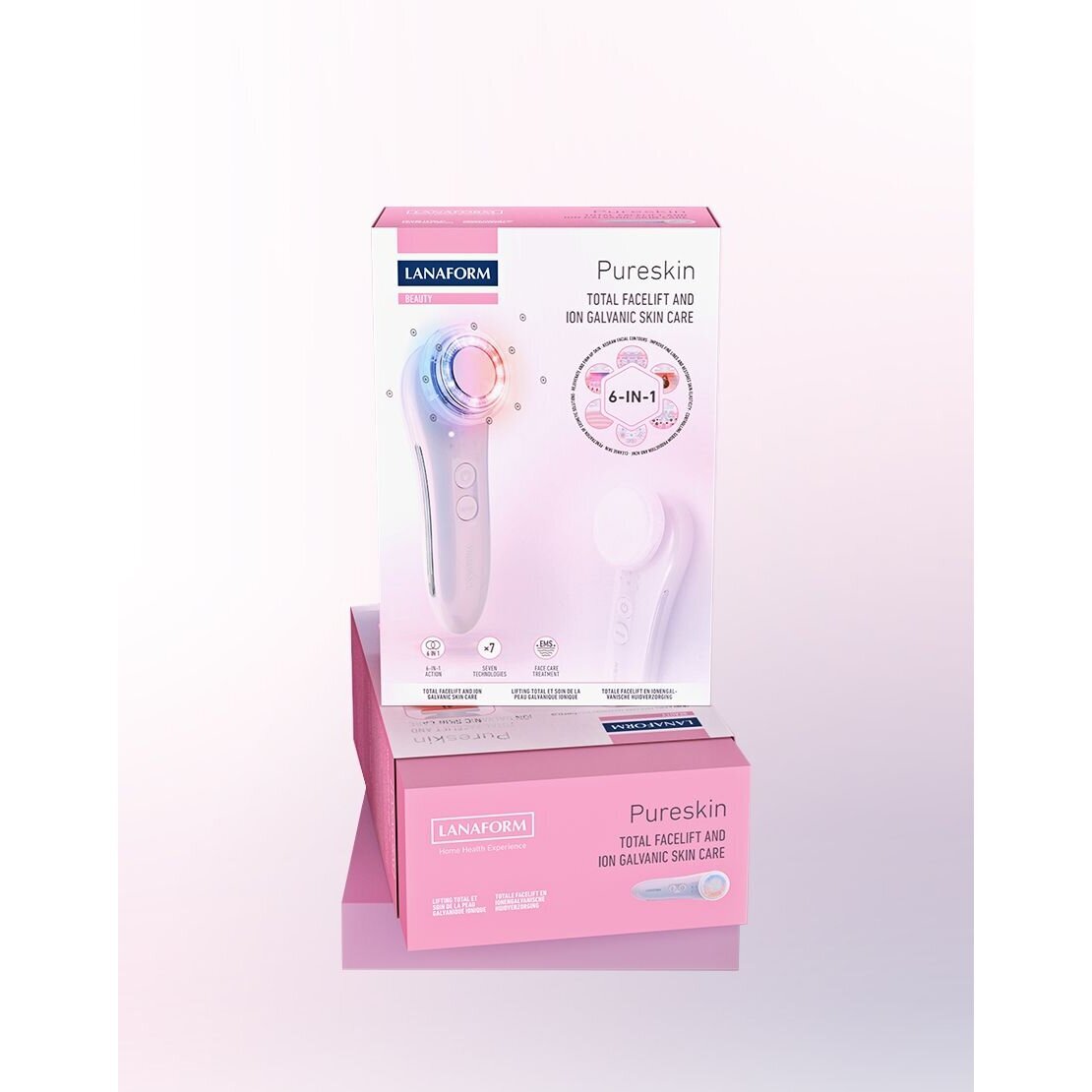 6-in-1 PureSkin aparaat on mõeldud näohoolduseks: sügavale nahka toimides puhastab nägu, hõlbustab kosmeetikavahendite imendumist, noorendab näonahka, see muutub pringimaks ja siledamaks. Naha kollageeni ja elastsuse taastamine vähendab ka väikseid kortse, määratleb uuesti näokontuurid, aitab vähendada rasu ja akne teket.PureSkini saladus? ... galvaaniline vool!