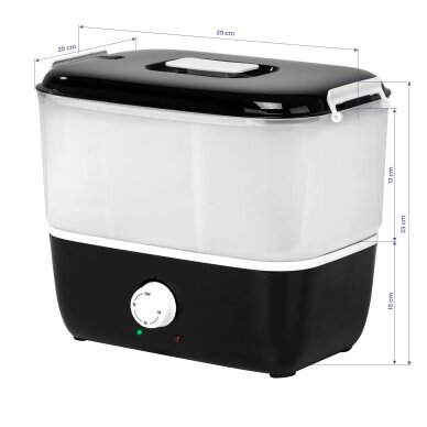 Mudelit iseloomustab kiire soojenemine , mõne aja pärast saavutab see maksimaalse temperatuuri, seega on see ideaalne valik professionaalidele, kes oma tööd kiirendavad. Taimer võimaldab seadistada kütteajaks 10, 20 või 30 minutit ning aja möödudes lülitub seade automaatselt välja, tagades ohutuse. Keris on jagatud kolme ruumi , mis võimaldab tõhusalt kasutada ruumi ja ruumi paljudele käterätikutele. LED-indikaatortuled ning minimaalse ja maksimaalse täitetaseme märgised tagavad kasutusmugavuse ja ohutuse.