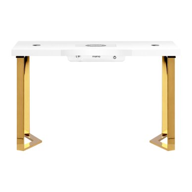 Maniküürilaud Momo 05 on ainulaadne kombinatsioon lihtsusest ja stiilist, mis on disainitud nõudlikumaid kasutajaid silmas pidades. Minimalistlik disain kuldsete elementidega lisab elegantsi. Sile läikiv lauaplaat tagab mugavuse ilusalongis igapäevaste tööülesannete täitmisel.
