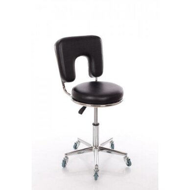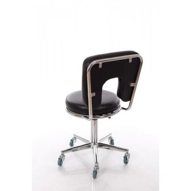 Ratastega peatool, kvaliteetne ökonahk ja pehme istmepolster ning kroomitud metalljalad koos jalatoega hoiavad teid kogu ravi vältel mugavalt. See stiilse disainiga tool täiendab teie salongi interjööri.