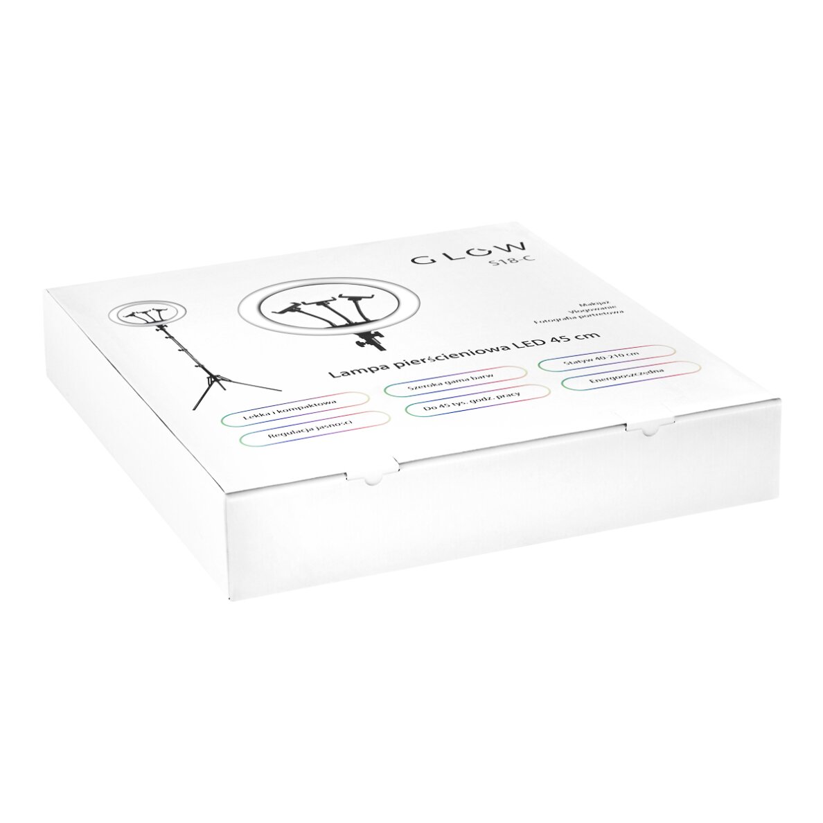 The 45-centimeter diameter Glow ring lamp is a practical device that will perfectly illuminate the workplace in a beauty salon, hairdresser or tattoo studio, and will also be useful for photography, filming, and social media materials. Shadow-free lighting will facilitate the performance of various procedures, and the adjustment of light intensity and color ensures greater working comfort .