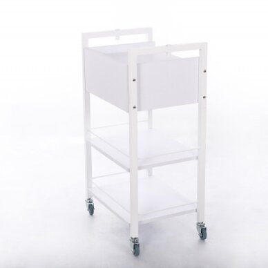 This cosmetology trolley allows you to conveniently store most of the accessories you need for your work - it has a drawer and two shelves. And because the trolley has wheels, you can easily move it to the right place.