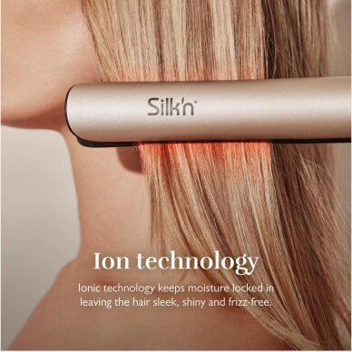 SilkyStraight uses infrared technology to protect hair quality from excessive heat and ionic technology to lock in moisture, leaving hair smooth, shiny and frizz-free.