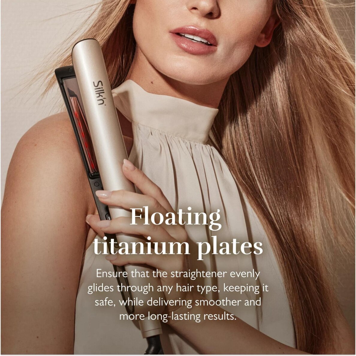 The sliding titanium plates heat up quickly, ensuring a smooth glide through any hair type, protecting it and leaving it smoother.
