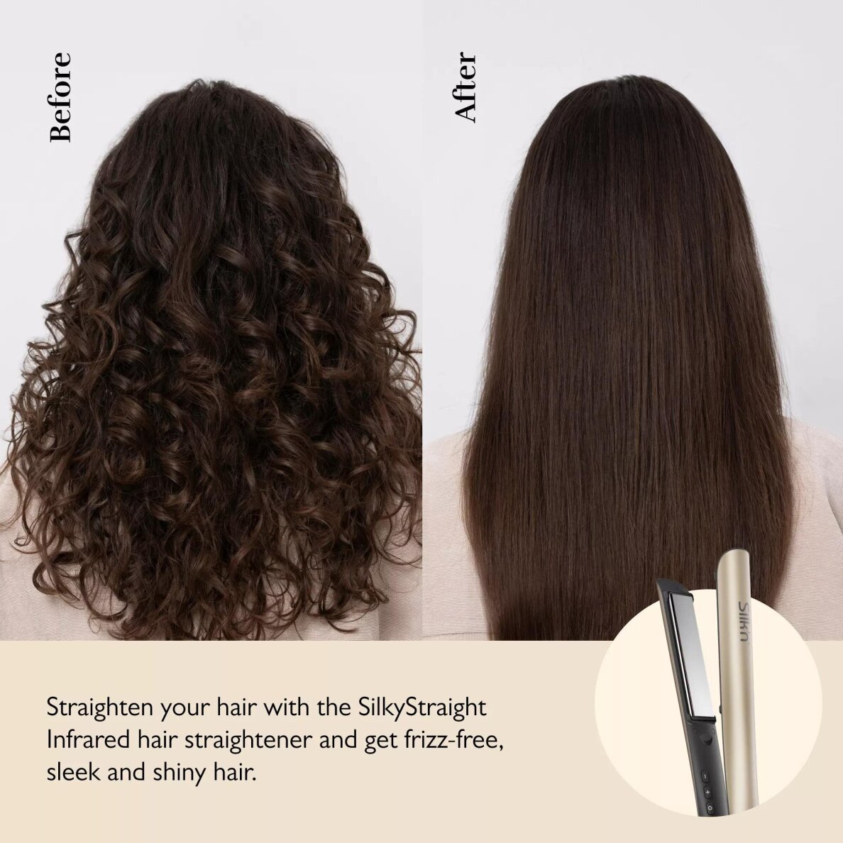SilkyStraight uses infrared technology to protect hair quality from excessive heat and ionic technology to lock in moisture, leaving hair smooth, shiny and frizz-free.