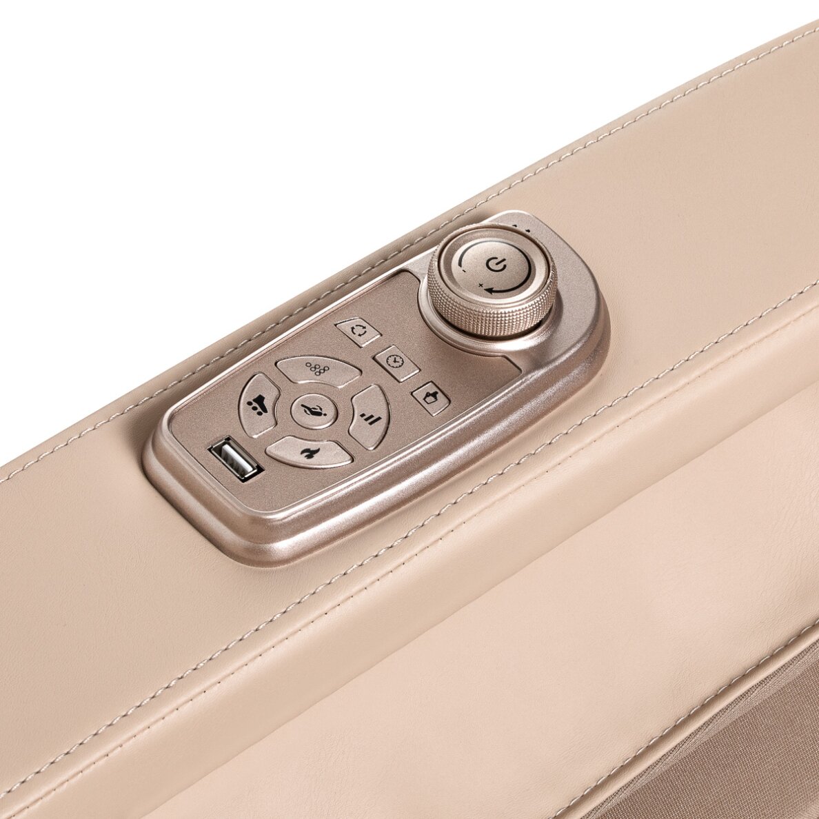 For even greater ease of use, the chair has built-in control buttons located on the left armrest . A convenient remote control allows you to quickly access the main functions without even reaching the main panel. With it, you can easily change the massage mode, start a foot massage or turn on the zero gravity function - all this is designed for maximum comfort and blissful relaxation. The massage chair also has a USB port that allows you to charge your phone during the massage.
