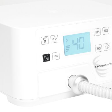 The device has a clear LCD display and convenient controls - adjustable speed range 4,000-40,000 rpm, vacuuming intensity, rotation direction and the ability to create three individual operating modes. The ergonomic, quiet and lightweight head with a brushless motor ensures smooth operation even during long procedures.