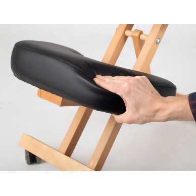 Tasapainotuolissa on erittäin mukava istuin ja jalkatuki kestävästä vaahtomuovista. Koko tuoli on päällystetty helposti puhdistettavalla ja miellyttävän tuntuisella verhoilulla.