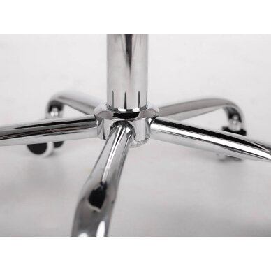 Kosmetologinen jakkara, jossa satulan muotoinen istuin, kätevä korkeussäätö ja pyörät. Satulan muotoinen jakkara auttaa jakamaan painon optimaalisesti ja helpottaa luonnollisen istuma-asennon ottamista. Tukeva, tähden muotoinen kromijalusta lisää eleganssia mihin tahansa sisustukseen. Suunniteltu hierontasaleihin, fysioterapiaan, kauneushoitoloihin ja kampaamoihin.