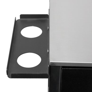 PRO INK 702 -kosmetiikkavaunu on suunniteltu tatuointivälineiden säilytykseen. Tukeva teräsrakenne tekee siitä kestävän. Puiset laatikot ja kromatut kahvat tuovat tyylikkyyttä. Alumiininen kansi pitää sen puhtaana, kun työskennellään pigmenttien kanssa. Kolmessa pienessä laatikossa ja yhdessä suuressa, tilavassa kaapissa voit säilyttää välineitä, tarvikkeita ja muuta. Kaikki mitä tarvitset istuntoa varten yhdessä paikassa. Kumiset pyörät (jarrulliset) takaavat, että kaapin siirtäminen ei painosta huolimatta ole pienintäkään ongelmaa.