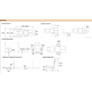 • Korkeudensäätö tapahtuu hydraulisella pumpulla, jossa on kiertolukko; selkänojaa ja jalkatukea ohjataan pneumaattisilla/mekaanisilla järjestelmillä sujuvaa ja tarkkaa säätöä varten.Tekniset tiedot