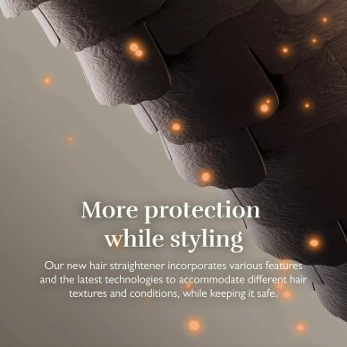 Infraraudonųjų spindulių technologija padeda apsaugoti plaukų kokybę nuo per didelio karščio, o jonų technologija išlaiko drėgmę, todėl plaukai tampa glotnūs, žvilgantys ir nesusivelia.Titano plokštės