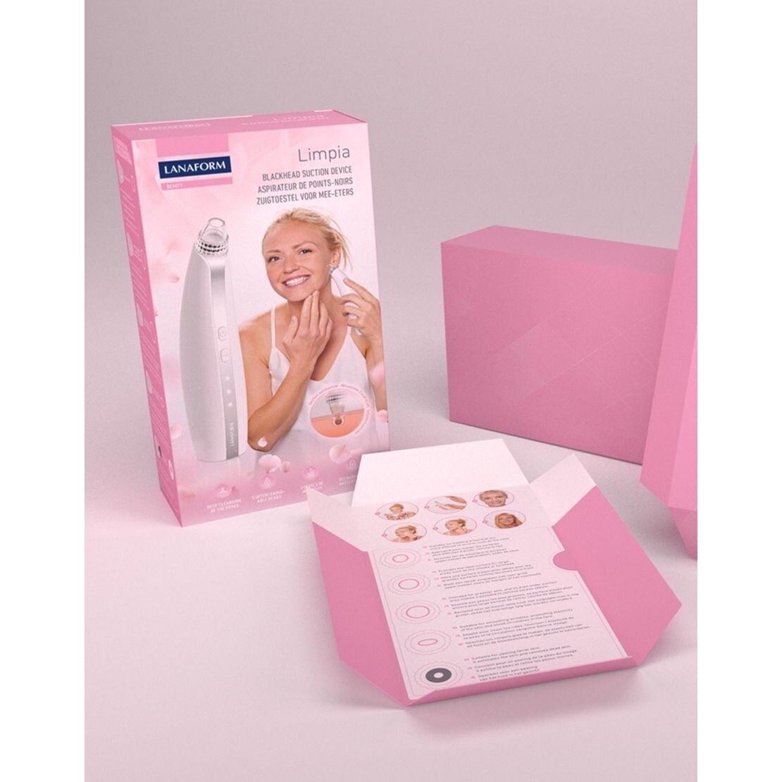 Vakuuminis veido valymo prietaisas Lanaform Limpia efektyviai pašalina spuogus ir inkštirus. Jis giliai valo odos poras, kad liktų švari ir švytinti oda.