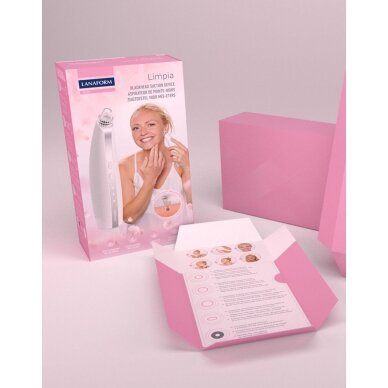 Vakuuminis veido valymo prietaisas Lanaform Limpia efektyviai pašalina spuogus ir inkštirus. Jis giliai valo odos poras, kad liktų švari ir švytinti oda.