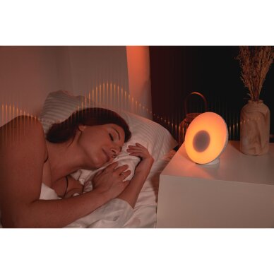 Ar norite mėgautis tamsesne aplinka kai miegate? Jokių problemų: ekrano šviesos intensyvumas automatiškai prisitaiko prie kambario šviesumo lygio, taip pat galite jį visiškai išjungti.Saulėtekio ir saulėlydžio simuliatorius, bet ne tik tai...