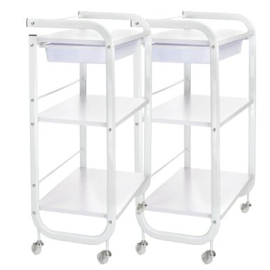 Vežimėliai su lentynomis tiks buteliukams, kosmetikos priemonėms, aukštesniems daiktams, kurių nenorite laikyti prie sienų pritvirtintose ar pastatomose lentynose, o visada norite turėti „po ranka“. Kosmetologiniai vežimėliai su stalčiais labai patogus sprendimas, kai turite nemažai smulkių daiktų, aksesuarų – stalčiuose jie bus patikimai apsaugoti, nepasimes, neišsibarstys.