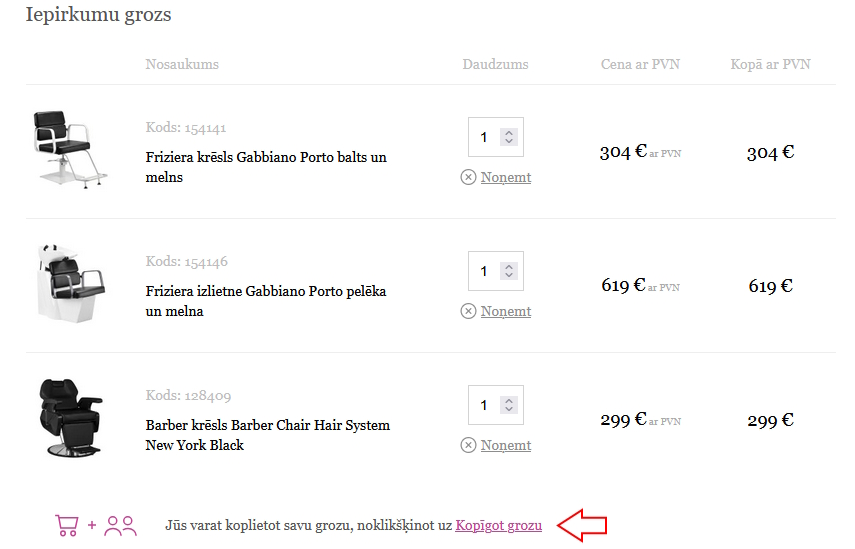 Jūs varat arī norādīt saiti uz savu iepirkumu grozu.