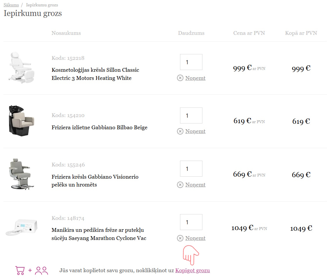 - Jūs interesējošo preču kodi vai saite uz jūsu iepirkumu grozu;