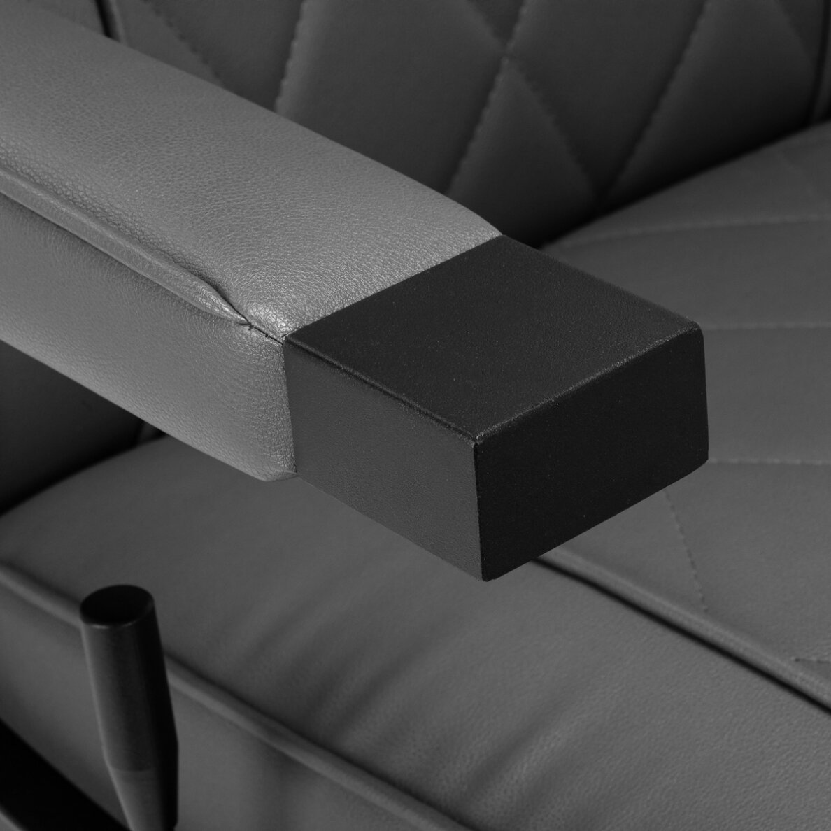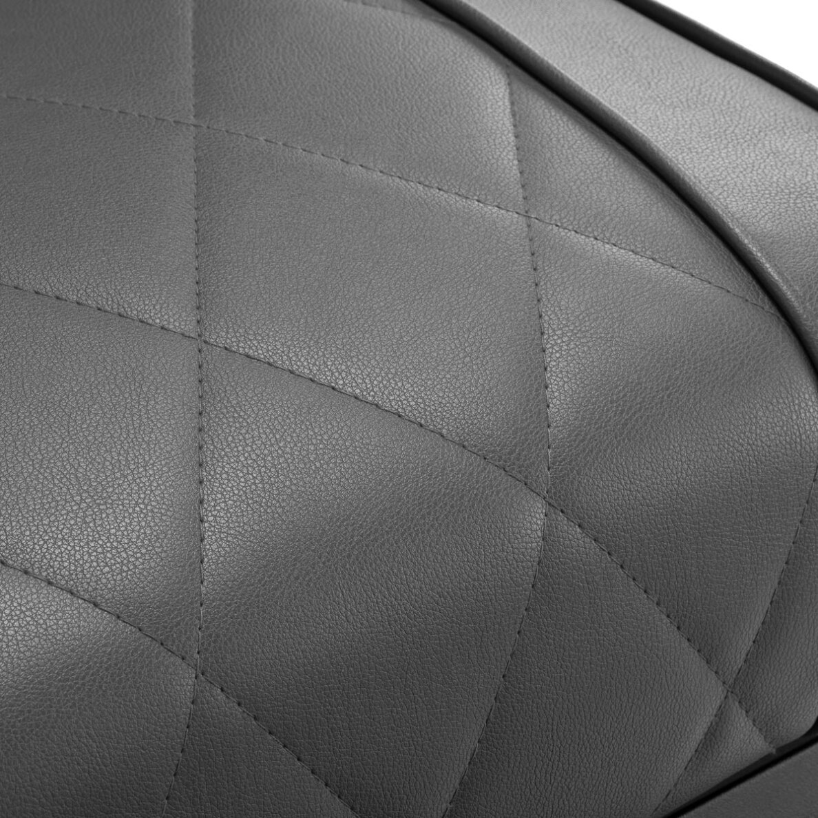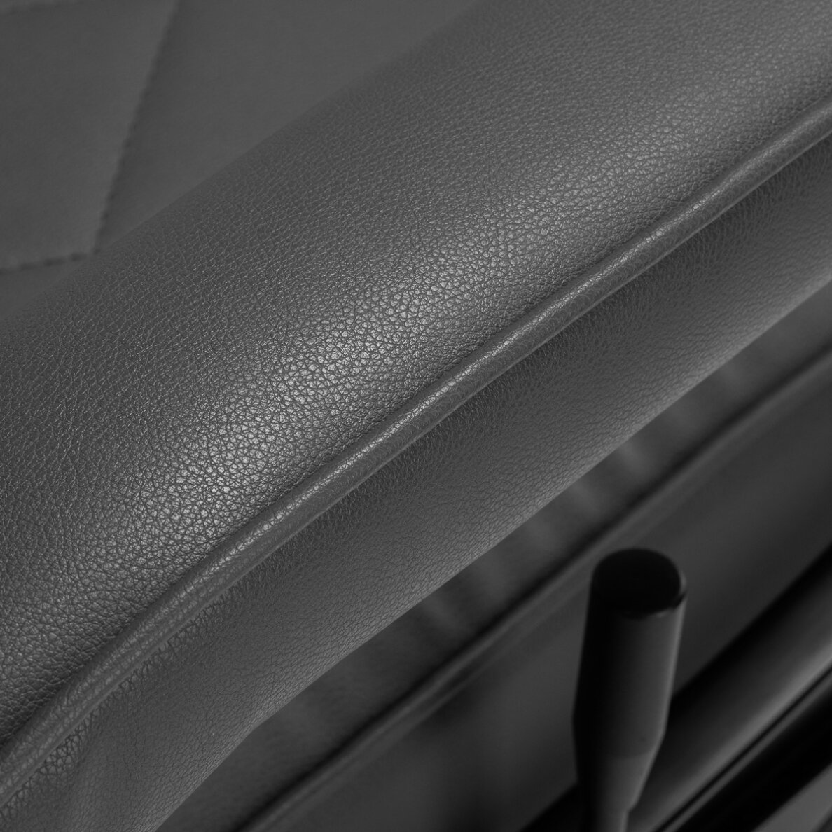 Izturīgā apaļā pamatnes konstrukcija nodrošina stabilitāti un augstu lietošanas komfortu . Sēdeklis ir pildīts ar deformācijai izturīgām putām, un apdare, kas izgatavota no patīkamas pieskārienam sintētiskās ādas ar matētu virsmu, nodrošina izturību un ilgstošu komfortu. Stilīgās vīles uz apdares piešķir krēslam automašīnas dizainam līdzīgu raksturu, uzsverot tā eleganto izskatu . Tās padara krēslu arī mitrumizturīgu, izturīgu un viegli tīrāmu . Pelēkā apdare piešķir tam unikālu raksturu, un minimālisma stils ļauj to kombinēt ar jebkura frizētavas interjeru.