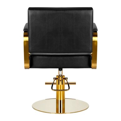 Cieta, plakana, apaļa pamatne garantē stabilitāti lietošanas laikā. Gludā virsma ar spoguļa apdari ļauj viegli uzturēt elementu tīru. Sēdeklis ar putu pildījumu nodrošina augstu lietošanas komfortu un ērtības pat daudzu stundu laikā. Krēsla aprīkošana ar pilnu rotācijas mehānismu padara friziera darbu efektīvāku un ērtāku. Šim modelim veltītais elegantais kāju balsts nodrošina stabilu atbalstu lietotāja kājām. Daļēji polsterēti roku balsti ir novietoti pareizajā augstumā, kas ļauj pareizi novietot klienta plecus – tas nozīmē, ka viņš neierok galvu plecos vai neguļ – nepārprotami atvieglo procedūru precīzu veikšanu , ieskaitot matu griezumus.