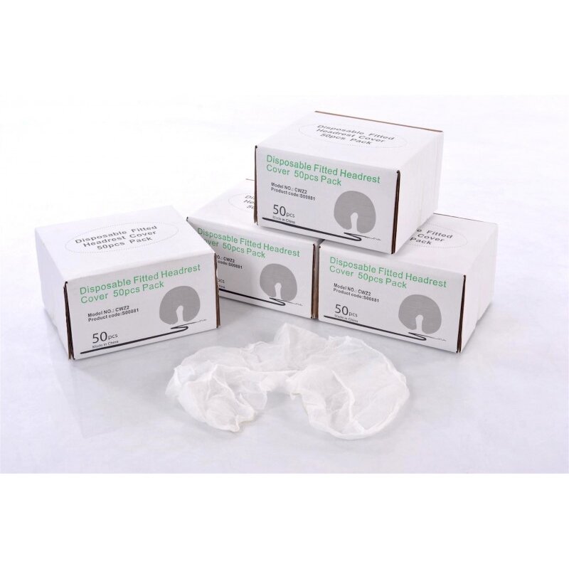 Vienreizlietojamie galvas balstu pārvalki 50 gab. Pateicoties elastīgajai lentei, lieliski pieguļ masāžas galda galvas balstam.