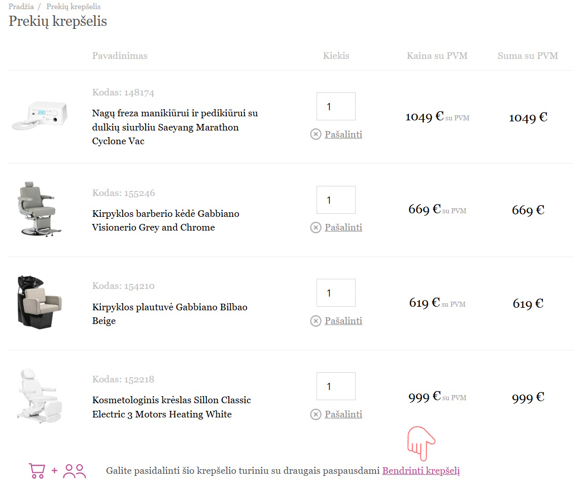 - Jus dominančių prekių kodus arba nuorodą į Jūsų prekių krepšelį;