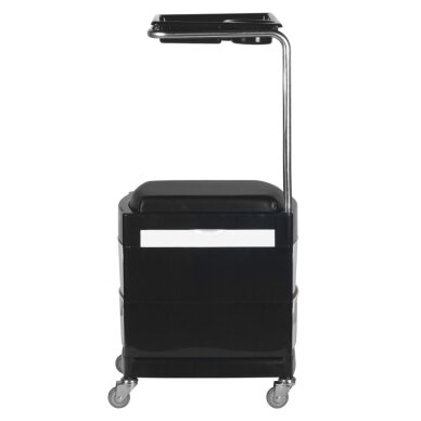 Funkcionalus kosmetologinis vežimėlis įrangai ir įrankiams susidėti. Nepakeičiamas kasdieniame darbe, dėl ratukų ir sėdynės gali būti naudojamas ir kaip kojų atrama pedikiūrui. Vežimėlis turi 2 ištraukiamas lentynas ir 2 stalčius.