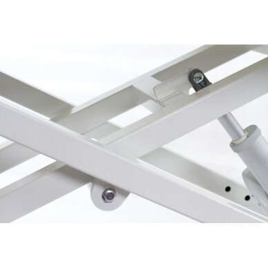 Elektryczny stół do masażu można łatwo regulować za pomocą specjalnego pedału – regulacja wysokości „PowerLift” pozwala błyskawicznie przygotować stół do pracy. Stalowa rama gwarantuje stabilność i wytrzymałość stołu - nie będziesz już musiał martwić się o ewentualne awarie pod dużym obciążeniem. Jedną z głównych cech tego modelu są mocne polipropylenowe koła przymocowane z jednej strony - przesuń stół w dowolne miejsce w kabinie bez pomocy innych osób! Z kolei wysokiej jakości trójwarstwowe wypełnienie stołu „Hard Foam” oraz luksusowa skórzana tapicerka wykonana ze skóry organicznej dadzą klientowi poczucie lekkości i komfortu.