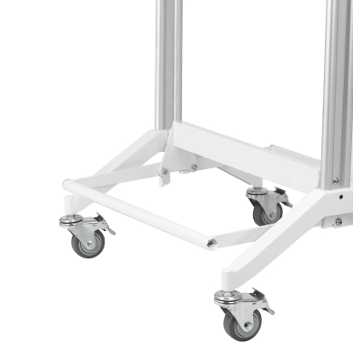 Praktyczna składana półka na wysokości 90 cm to jedna z głównych zalet konsoli MI-03, która pozwala zaoszczędzić miejsce, a jednocześnie oferuje funkcjonalną przestrzeń do przechowywania. Dodatkowo, dwustronna konstrukcja oraz kółka z możliwością blokowania zapewniają mobilność i łatwość w przestawianiu konsoli. Otwory w półce służą jako uchwyt na suszarkę, co czyni ją jeszcze bardziej praktyczną i dostosowaną do potrzeb profesjonalistów w branży fryzjerskiej.