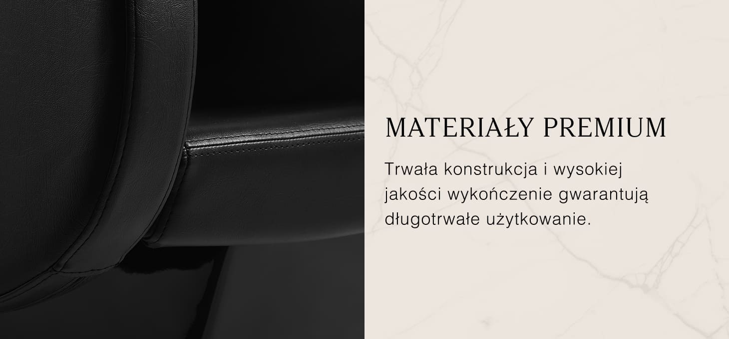 Fotel wypełniony trwałą pianką gwarantuje wysoki komfort użytkowania, a efektownie wyprofilowane podłokietniki pozwalają na wygodne ułożenie barków klienta. Oparcie pod optymalnym kątem wspiera kręgosłup, zapewniając pełen relaks. Pokrycie ze skóry syntetycznej w odcieniach czerni gwarantuje wytrzymałość oraz łatwość czyszczenia. Nowoczesna forma mebla podkreśla elegancki charakter wnętrza. W zestawie znajduje się kompletna armatura o matowym wykończeniu w odcieniach czerni, w tym bateria, słuchawka prysznicowa oraz dedykowane węże, aby zapewnić całkowity zestaw narzędzi do pracy.
