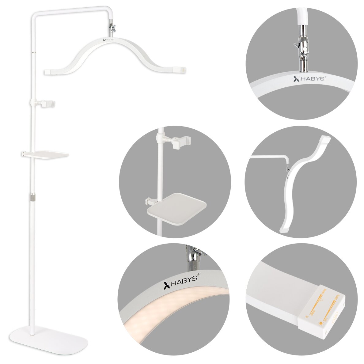 Новое поколение профессиональных осветительных ламп HABYS. 320 светодиодов создают равномерное бестеневое освещение до 2500 лм, благодаря чему процедуры — от наращивания ресниц до перманентного макияжа — выполняются с точностью.