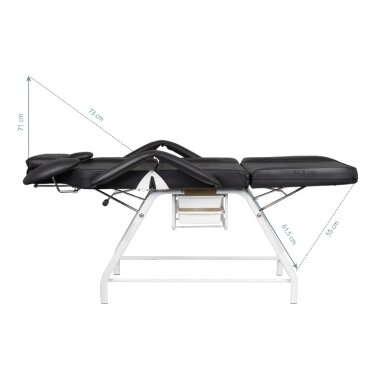 Косметологическое кресло имеет регулируемые вручную подножку, спинку и подлокотник. Подлокотник - очень практичное решение, не встречающееся в других креслах. В комплект поставки входят удобные лотки для хранения необходимых принадлежностей.