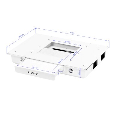 Встроенный в столешницу кассетный пылеуловитель Momo J-02 значительно повышает комфорт и гигиену работы , эффективно удаляя пыль, образующуюся во время косметических процедур. Благодаря этому устройству воздух в салоне остается чистым, а рабочее место незагрязненным, что повышает комфорт как косметолога, так и клиентов . Пылеуловитель прост в использовании и обслуживании, что еще больше увеличивает его функциональность. Регулярная очистка и замена фильтров обеспечивают неизменно высокую эффективность всасывания .