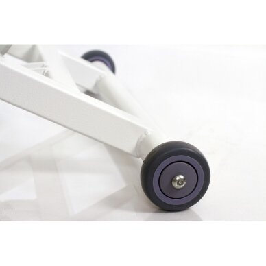 Электрический массажный стол легко регулируется с помощью специальной педали - регулировка высоты PowerLift поможет вам в кратчайшие сроки подготовить стол к работе. Стальная рама гарантирует устойчивость и прочность стола - вам больше не придется беспокоиться о возможных поломках при больших нагрузках. Одной из главных особенностей этой модели являются прочные полипропиленовые колеса, прикрепленные с одной стороны - перемещайте стол в любую точку салона без посторонней помощи! В свою очередь, высококачественный трехслойный наполнитель Hard Foam и роскошная обивка из эко-кожи подарят клиенту ощущение легкости и комфорта.