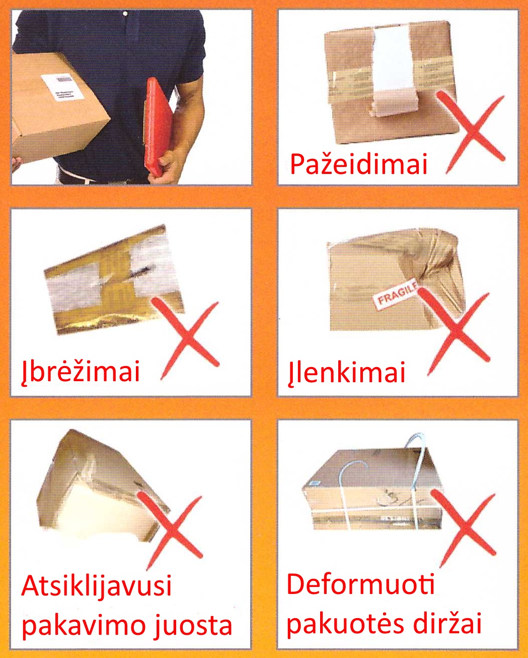 PRIEŠ PRIIMDAMI KURJERIO PRISTATYTĄ PREKĘ, atidžiai patikrinkite siuntos būklę!