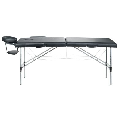 2 dalių sulankstomas aliuminis masažo stalas – lengvas, stabilus ir patogus pasirinkimas masažuotojams, kineziterapeutams ir mobiliai dirbantiems specialistams. Reguliuojamas aukštis, ergonominis galvos laikiklis, šoninės rankų atramos ir papildoma lentynėlė rankoms užtikrina komfortą atliekant įvairias procedūras.